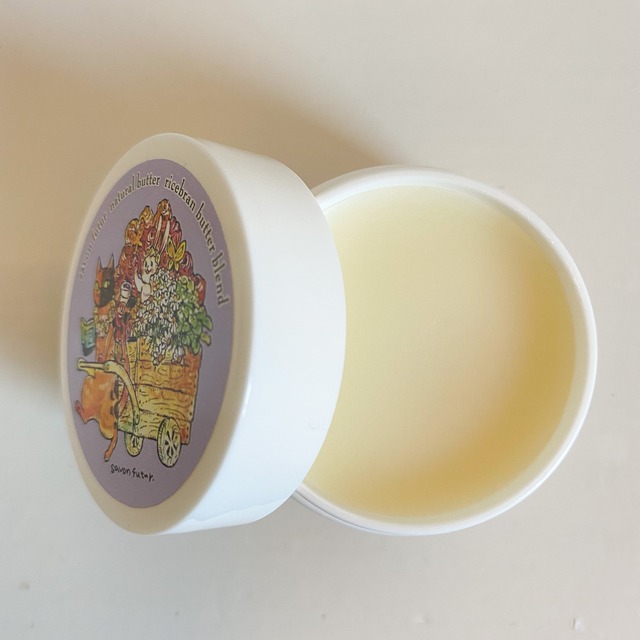 成分:ホホバ種子油、シア脂、ミツロウ、オリーブ油、アーモンド油、ニュコウジュ油、ゼラニウム油、ムラサキ根エキス、トコフェロール 内容量:20g ※高温・直射日光のあたる所には置かないで下さい。お肌にあわないときはご使用をお やめ下さい。使用後は必ずしっかりとフタを閉めて下さい。